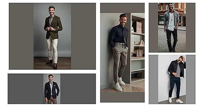 This guy is rocking a classic men’s clothing style! Think clean lines, a crisp button-down shirt, and sleek gray pants. He’s giving off serious “I’ve got this” vibes, ready to take on the world. It’s a look that’s timeless and never goes out of fashion.