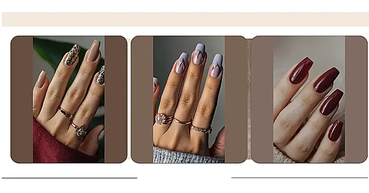 These nails are so chic, they’re practically screaming “Look at me!” They’ve got that fancy, grown-up vibe with the deep burgundy and gold accents, but they’re also fun and playful with the way the colors are mixed and matched. I’m picturing these nails with a sparkly outfit and some killer confidence – you know, the kind of confidence that makes you feel like you can conquer anything.