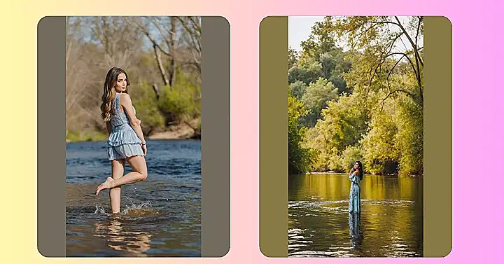 Then, once all the chilliness and rock-balancing acts are over, we get this incredible result! The golden light hitting the trees in the background, the way her hair flows just right, and that fantastic pose – it all makes the river look like a natural runway. This picture makes you forget all about the cold water and slippery rocks, and just appreciate the magic that comes from a well-planned river photoshoot. It proves that with a great location, a little bit of bravery, and a lot of style, you can turn a regular river into the most glamorous backdrop imaginable. Who needs a fancy studio when you’ve got nature’s spotlight?