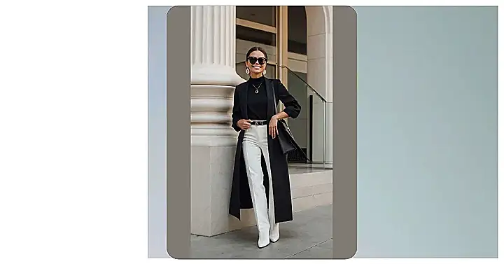 Imagine rocking up to school looking this good! This outfit is like the professional version of black and white cookies, only way more stylish. White pants are daring, but with that long black blazer, you’re totally pulling off the “I’m in charge” vibe. If your job involves important meetings or just wanting to impress people, this could be your go-to look.