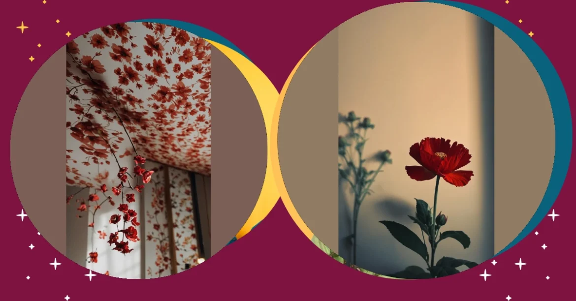 Seriously though, those red flowers are stunning. They’re like two little suns peeking out from behind a dark cloud. It’s the perfect picture if you’re going for a “mood” but also if you just like really pretty things. Maybe this isn’t exactly *wallpaper*, but if it was, it would definitely be the coolest wallpaper on the planet. It’s way more interesting than plain old paint, don’t you think?