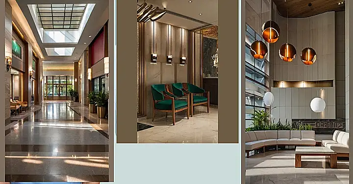 The best part about this lobby design? It totally mixes comfort and style. You’ve got plenty of cozy seating to chill on your phone (or actually chat with someone!), but the whole look is so polished and fancy it feels like stepping into a high-end magazine spread. It’s the perfect blend of “relax, you deserve it” and “ooh, look at me, I’m sophisticated,” all in one fabulous space. They clearly didn’t skimp on the ‘wow’ factor with this lobby decor – it’s an instant mood booster!