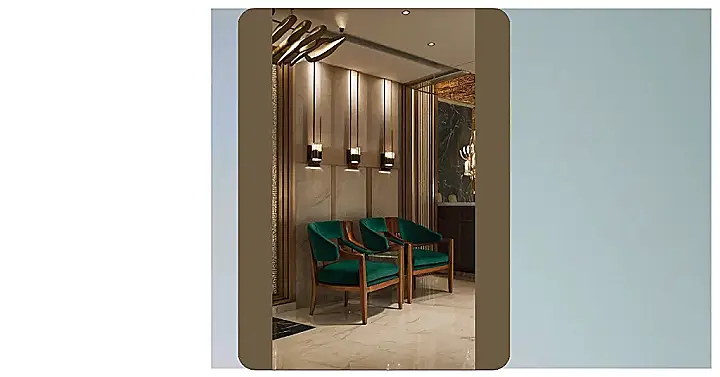 This lobby decor isn’t just about looks, though! It’s practical too. The mirror reflects the light beautifully, making the whole place feel bright and airy. Plus, those gold details add a touch of class without being too over-the-top. The design is so clever – it makes even a simple waiting area feel special and luxurious, perfect for impressing anyone who walks in. It’s the kind of lobby you’d want to hang out in just to admire the design, even if you don’t have an appointment.
