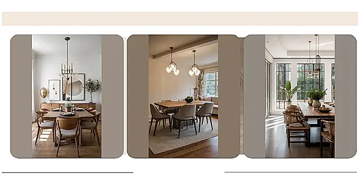 Seriously, check out those details! The live-edge of the table adds so much character—it’s like having a piece of nature in your dining room. And the contrast between the dark chairs and light wood is seriously stylish. It’s proof that you don’t need a million decorations to make a dining room feel special. Sometimes, less is more! Just a few plants and candles, and you’ve got a room that’s both cozy and sophisticated. Who knew dining room decor could be so easy and awesome?