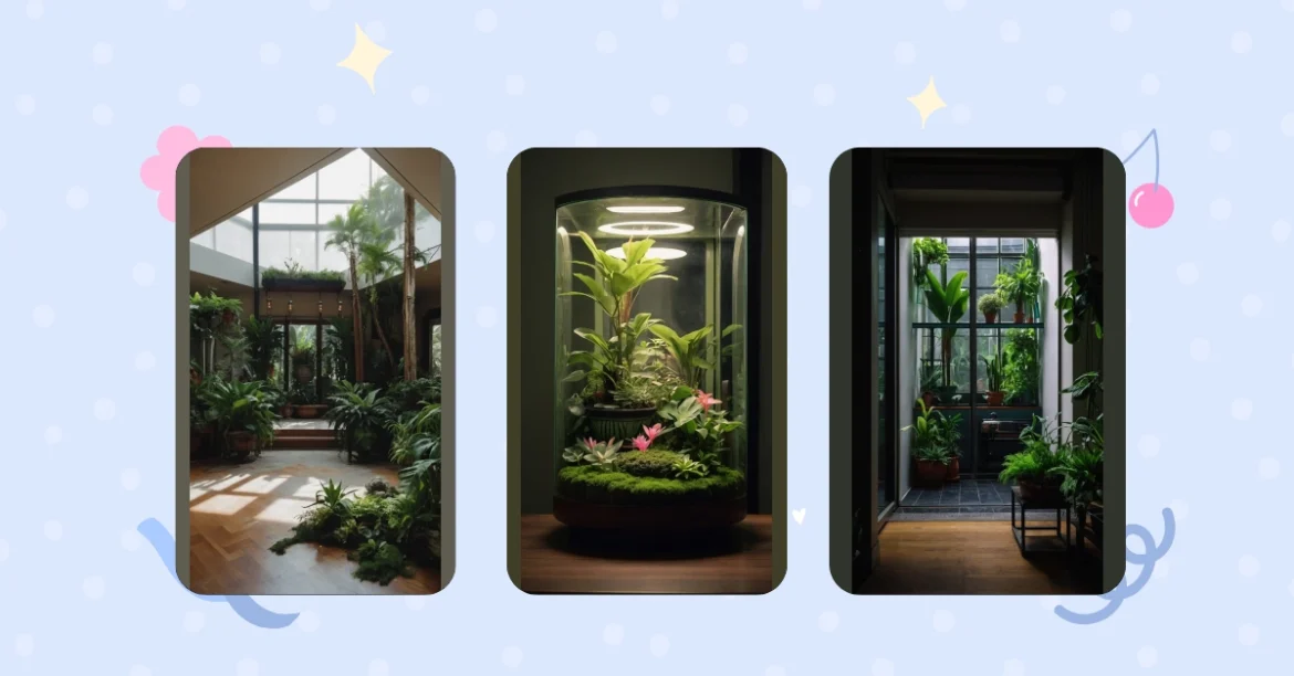 This isn’t your grandma’s houseplant! Check out this super cool, modern indoor garden – it’s like a tiny rainforest in a glass case. Imagine a jungle, but way smaller and way easier to keep alive (no pesky monkeys included). It’s got all the best bits: lush green plants, bright pink flowers popping out, and a seriously stylish glass enclosure that’s basically plant-heaven in a box. It’s like having a little slice of the Amazon in your room, without all the humidity and the creepy crawlies.