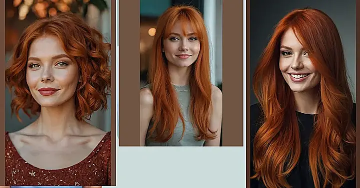 This picture is like a sunset, all warm and glowing! The woman’s hair is amazing – that gorgeous, vibrant red is seriously eye-catching. It’s like a fiery waterfall cascading down her shoulders. I bet she gets tons of compliments, and honestly, who wouldn’t want to run their fingers through those luscious locks? It’s the kind of hair that makes you want to instantly grab a handful and say, “Wow, that’s amazing!”