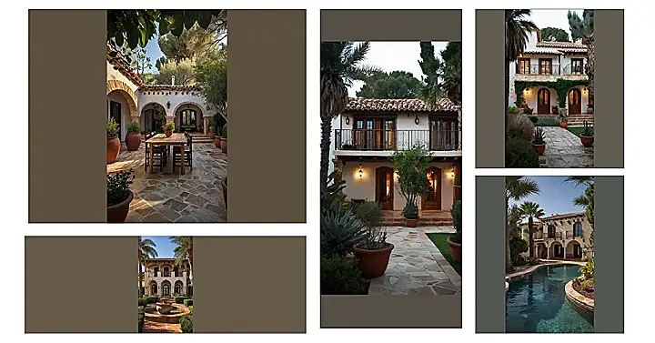 Picture this: you’re lounging in a Spanish Mediterranean home, the sun warming your face as you sip something refreshing. This isn’t just any house; it’s a dreamy courtyard oasis, complete with terracotta pots overflowing with plants, arches that whisper tales of old Spain, and a patio made of stones that look like they’ve been sun-baked for centuries. You could almost imagine flamenco dancers suddenly bursting into a performance right there in the middle of your delicious lunch, but for now, you’ll stick with the incredibly tasty paella!