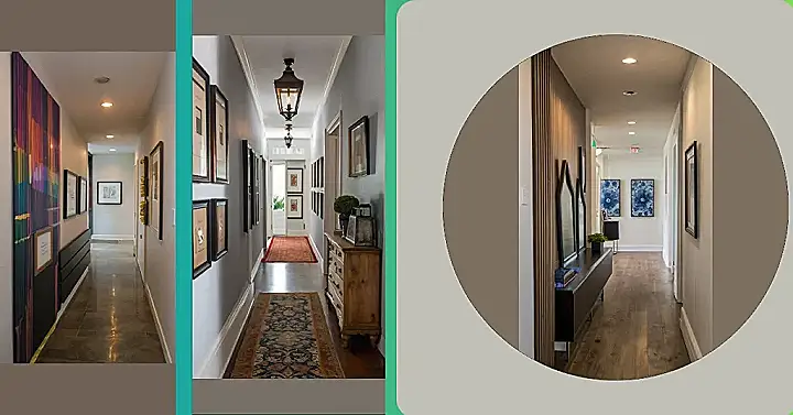 This hallway went from “blah” to “wow!” Just look at that amazing transformation! It’s like someone sprinkled magic dust everywhere. The boring old floor suddenly feels fancy with the new rug, and those plants in the fancy pots add a touch of jungle chic. It’s all so stylish and sophisticated, that even your grandma would be impressed. It proves that even a long, narrow hallway can become a showstopper with a little bit of creative decorating. Remember, a hallway isn’t just a passageway—it’s a chance to showcase your style!