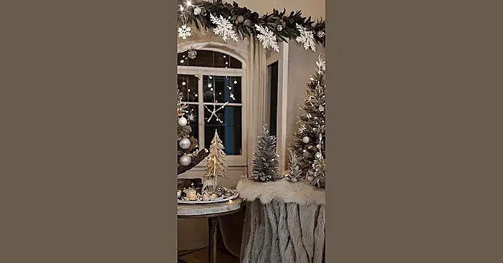 This Christmas, ditch the red and green! This picture shows how amazing a silver and white Christmas can be. Imagine snuggling up by the window, watching the snow (or rain, let’s be honest) fall outside, while your super-stylish, sparkly Christmas trees twinkle inside. It’s like a winter wonderland, but instead of freezing your toes off, you’re cozy and warm with the best indoor Christmas decorations ever! That fluffy table runner is the perfect touch – it almost looks soft enough to sleep on!
