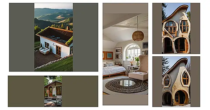 It’s totally a tiny nature house, but not in the way you’d expect. Forget small and square – this place is all about curves and character. Those big, round windows let in tons of sunlight, perfect for reading a book or just watching the clouds drift by. I bet it’s super cozy inside, and you could probably tell some amazing stories to anyone who dared to visit this oddly wonderful, oddly shaped little home!