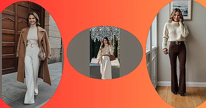 This outfit is the perfect blend of comfy and stylish – ideal for those chilly winter days when you want to look good without sacrificing comfort. Imagine strolling through a winter wonderland, bundled up in this creamy sweater and chic camel-colored trousers. The wide-leg pants are seriously flattering, and that chunky belt adds a touch of effortless sophistication. You’ll be ready to conquer snow days or impress your friends with your fabulous winter style!