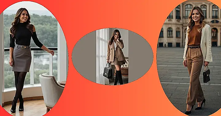 This picture shows a woman rocking a seriously stylish work outfit! She’s got that perfect blend of professional and totally fashionable. That brown leather skirt is fierce, and the black blouse is just classy enough to impress your boss – but still comfy enough to survive a long day of presentations and meetings. Let’s be honest, who doesn’t want to feel like a million bucks while crushing it at work?