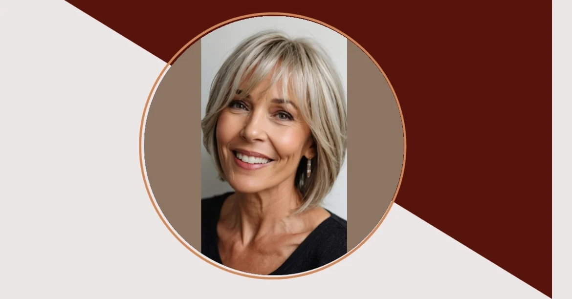 This lady’s got a smile that could melt glaciers, and a hairstyle that’s just as dazzling! Her chic, blonde, wavy bob is perfect for anyone over 50 who wants a look that’s both effortlessly stylish and super easy to manage. Think less time fussing with your hair and more time enjoying your awesome life. No more bad hair days, just good hair days, every day!