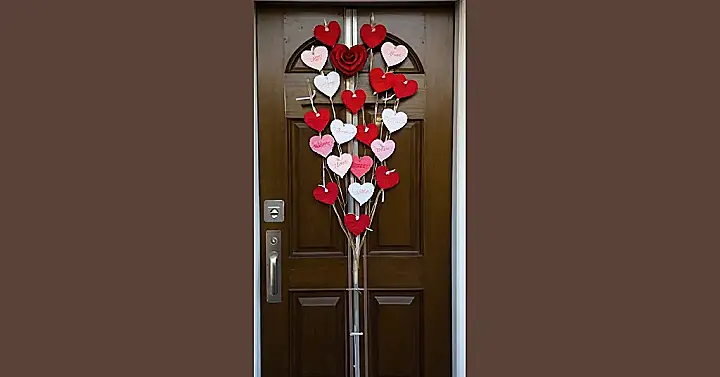Think of this as Valentine’s Day armor for your door. Each heart is layered up like a superhero’s costume, ready to defend against anyone who isn’t feeling the love. Plus, it’s way more impressive than a sad, store-bought heart. It’s pretty much guaranteed to make your crush think you’re super creative and totally into Valentine’s Day… even if you just slapped it together the night before. Shhh, our little secret.