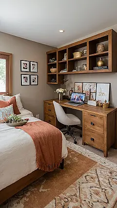 Getting a room makeover totally transforms your personal kingdom, turning chaos into a place you actually want to hang out in. Imagine having a desk area like the one in the picture that makes doing… *ahem*… important stuff look super stylish, even if you’re just watching cat videos. And that bed looks like it’s ready for serious lounging or plotting world domination (or maybe just scrolling TikTok). It’s amazing how adding cool storage and some cozy vibes can make your room feel like the coolest spot in the house.