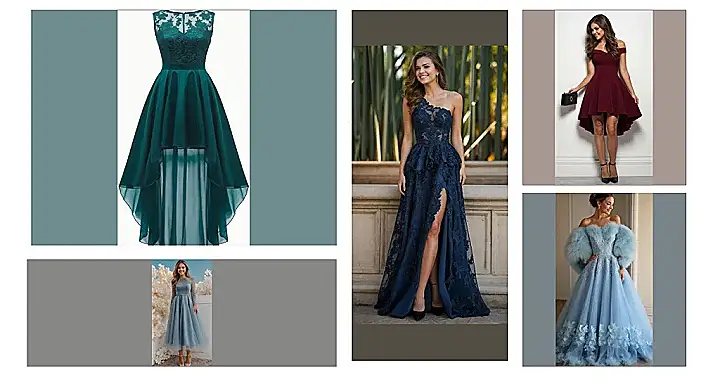 Finding the right dress length is just as important as the shade. Whether you opt for a cute short dress that allows you to show off your shoes or a sophisticated knee-length design, each comes with its own personality. And if you’re feeling particularly fancy, the long dress option will have you feeling like you just walked off a red carpet—talk about a dramatic entrance!
