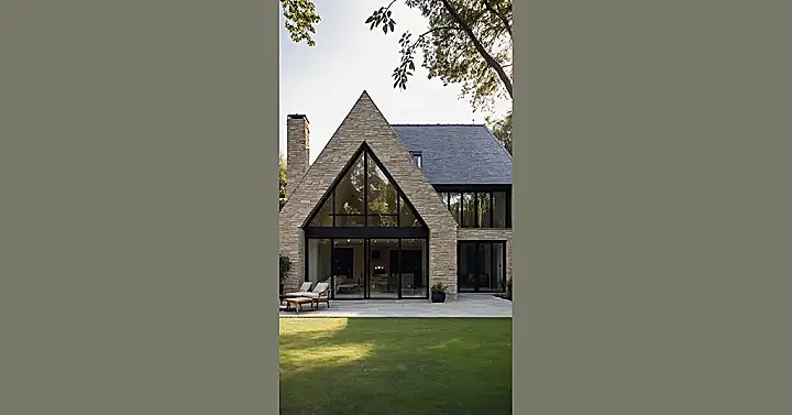 This house isn’t just a house; it’s practically a giant work of art that decided to become a home! With its super cool triangular window stretching up to the sky, it’s like the architects thought, “Why have small windows when you can have a window that’s basically an entire wall?” You could probably spot a squirrel from like, three counties over, or have the most epic stargazing sessions ever right from your couch. It definitely takes ‘unique house design’ to a whole new level, making all the other houses on the block feel a little bit… square.