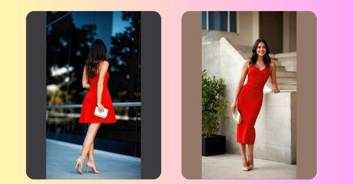 Wow, check out this fiery red dress! It’s one of those outfits that just screams ‘hello, world!’ and instantly makes you feel like you could conquer anything, even that super tricky math problem you’ve been avoiding. The way it catches the light, paired with those awesome heels, makes you wonder if she’s heading to a fancy party, a cool photoshoot, or maybe just making a grocery run extra glamorous. Either way, she’s totally rocking that confident smile and proving that a great red dress outfit isn’t just clothes; it’s a superpower for your mood!