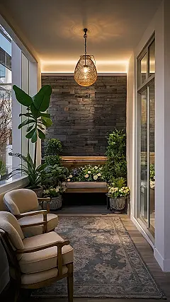 Imagine this: It’s raining cats and dogs outside, but you’re chilling in your own personal jungle, comfy as can be! This indoor garden is like a secret escape, all cozy seating and twinkling lights. It’s so lush and green, you almost forget you’re not actually lounging in a rainforest – except maybe a rainforest with super comfy white cushions and a fancy low table for your snacks!