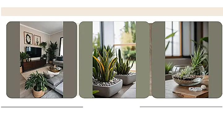 Getting started with indoor plants isn’t scary; it’s actually pretty fun! You can get tall ones that stand guard in corners or little ones that sit cutely on tables, just like in this photo. They add amazing colour and texture without needing a paint job. Think of them as living decorations that also make the air a bit nicer. Just remember they need sunlight and water, not pizza, though they probably wish they did!