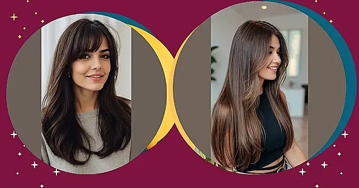 Thinking about getting curtain bangs? It’s like giving your hair a little makeover that says, “I woke up like this, but also, I’m super stylish!” These bangs are known for being the chill, low-maintenance cousins of traditional bangs. You can sweep them to the sides like actual tiny curtains (hence the name!) or let them playfully part down the middle, giving you that ‘just-woke-up-gorgeous’ look, much like the subtle framing we see here. They grow out like a dream, so no weird in-between stages, and they add that perfect touch of effortless cool to any hairstyle, whether you’re rocking sleek straight hair or bouncy waves like the ones in the picture.