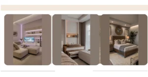 This bedroom looks like it belongs on a luxury hotel advertisement, ready for the most epic sleep of your life! Just check out that mountain of fluffy white and beige pillows – you could literally build a fort in there, or at least disappear into comfort for a solid 12 hours. And that super cozy, furry throw blanket draped across the bed? It’s practically a giant hug waiting to happen. With the soft lighting from the lamp and those elegant white roses on the nightstand, it’s definitely setting a seriously relaxed and romantic mood.