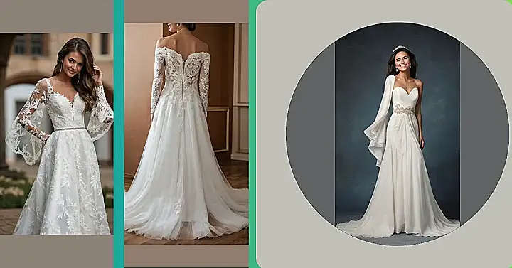 Okay, so picture this: you’re at your wedding, but instead of a stiff, traditional dress, you’re rocking something that says, “I’m getting married, but I also might break out into a spontaneous dance party.” This dress? Totally that dress! It’s like someone took a classic wedding gown and then sprinkled it with fairy dust and a whole lot of “I do things my way” vibes. Those sleeves look like they are perfect to fan yourself dramatically when your weird Uncle starts telling the same story for the fifth time.