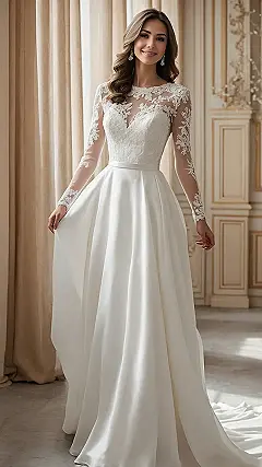 This ivory wedding dress looks like it floated straight out of a fairytale, complete with enough delicate lace to make even the pickiest queen happy. From the detailed long sleeves that shimmer a bit to the incredible, billowy skirt, every inch of this gown is practically begging for a grand entrance. You might feel like you need a personal assistant just to manage all that gorgeous fabric, but honestly, who cares when you look this majestic? Just try not to trip over your own fabulousness while making your way to the cake!