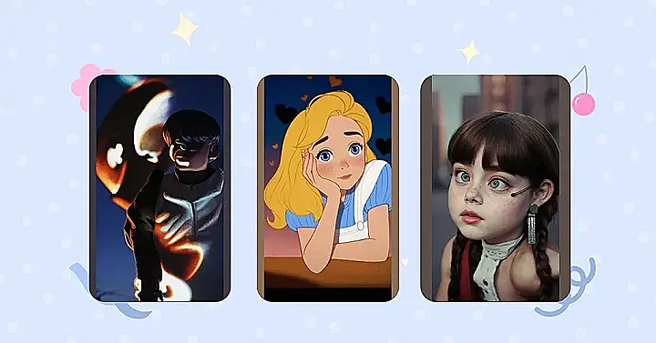 The picture shows a cute cartoon girl with big, dreamy eyes and a soft smile. She looks like she’s completely lost in thought, maybe imagining a magical adventure or a super-cute crush! It’s like she’s totally zoned out and doesn’t even notice the hearts floating around her. This is totally a “literally me” moment when you’re completely lost in your own world and everything else fades away!