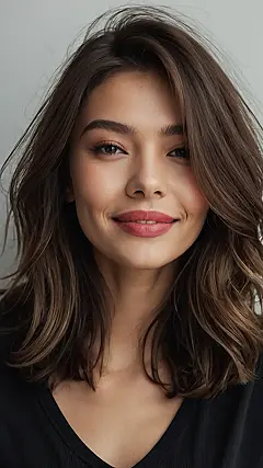 This haircut is like magic – it can make any face look amazing, like that gorgeous smile in the picture! It adds volume, movement, and a whole lot of pizzazz. It’s the kind of cut that makes you feel like you can conquer the world, or at least have an awesome hair day. Plus, think of all the fun you could have styling it! You could try out waves, braids, or just let those layers do their own thing. It’s the hair equivalent of having a superpower!