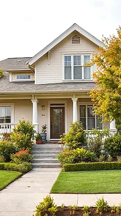 Follow that awesome flagstone path leading up to the front, and you might just expect a friendly robot butler to greet you – it’s that welcoming! The warm glow spilling from the windows looks like the perfect spot for an epic gaming session or a seriously comfy study nook (we know, the study part is less exciting, but still!). It’s got that look that says, “Come on in, kick off your shoes, and let’s pretend we live on a sprawling estate, even if it’s just a super cool house down the street.”