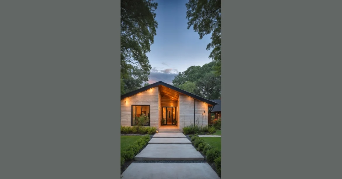 Even the path leading up to this place looks like it’s saying, “Welcome, superstar!” with its clean, step-like design, practically inviting you to a red-carpet event… or at least a super chill evening. The way the lights glow against the warm wood and the dark trees makes it feel like the house is giving you a friendly wink. Plus, with a house this stylish, you wouldn’t even need to pretend you’re doing chores – it’s clearly designed for maximum fun and zero actual farming, unless you count tending to your perfect Netflix queue.