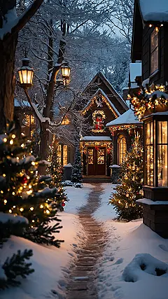 Let’s be real, your phone background deserves a serious upgrade from that default blue blob or, gasp, your old math notes. This picture of a snow-covered path twinkling with warm, fuzzy lights is basically a digital hug for your eyeballs. It’s like Mother Nature decided to throw a fancy garden party, but only invited the really good-looking string lights. Slap this festive wallpaper on your screen, and suddenly even that urgent text from your mom about chores will feel a little more magical, or at least a whole lot prettier to look at while you procrastinate.