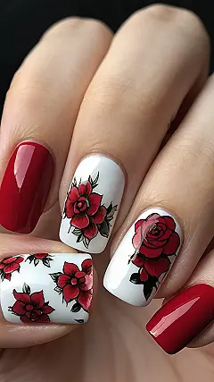 Okay, so maybe you’re not into the whole hearts-and-cupids vibe, but you still want your nails to scream, “I’m fabulous and ready for Valentine’s Day!” These nails are totally it. The black and red roses give off a cool, edgy romance kind of feel, perfect for those who want to add a touch of dark glamour to their look. It’s like saying, “Yeah, I celebrate love, but I do it my way,” which, let’s be honest, is always the best way.