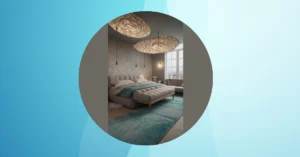 Forget trying to count sheep in a room this awesome; you’d be too busy taking in all the cool details! The bed itself is pure luxury with that plush teal velvet headboard, practically begging you to sink in and chill. And check out those throw pillows – bright yellow, deep blue, hot pink – they’re like a rainbow had a stylish pillow fight on the bed. The warm, glowing light from the fancy chandelier and those cool wall lamps gives everything a super cozy, almost secret garden feel. It’s the kind of place where you could binge-watch your favorite show all night or just relax and feel like you’ve stepped into an epic, comfy adventure.