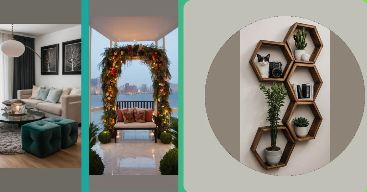 Check out these awesome hexagon shelves! They’re like a beehive for your home, but way cooler. You can totally deck them out with plants, books, even a grumpy-but-cute cat like the one pictured (don’t tell him I called him grumpy!). It’s a super stylish way to add some personality to your room without breaking the bank – proof that luxury home decor doesn’t have to cost a fortune!