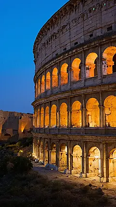 Imagine this: you’re standing outside the Colosseum, a giant stone circle that whispers stories of gladiators and emperors. The sky is a deep, dreamy blue, and the ancient arena glows with a warm, inviting light. It’s like the building is breathing, its arches and hallways hinting at the epic events that have unfolded within its walls. It’s a place that feels like a scene from a movie, and you just know you’re going to have an epic adventure.