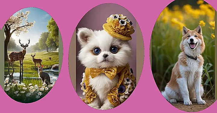 This adorable little pup is rocking a look that would make even the most stylish human jealous! It’s like they stepped out of a fairytale, all dressed up in their finest yellow finery. The fluffy hat with flowers on top is like something you’d see on a princess in a movie, and the bowtie with those polka dots adds just the right touch of whimsy. You can almost hear this little fluffball say, “Look at me, I’m fabulous!”