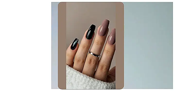 Look at these nails! They’re like a fancy latte – all warm and cozy. The black polish is like a dark roast, strong and sophisticated. But then you’ve got the brown, which is like the creamy milk, making the whole thing feel super chill and relaxing. It’s the perfect combo for those crisp fall days when you’re curled up with a good book and a cup of hot cocoa. You’ll be the envy of all your friends with these stylish nails.