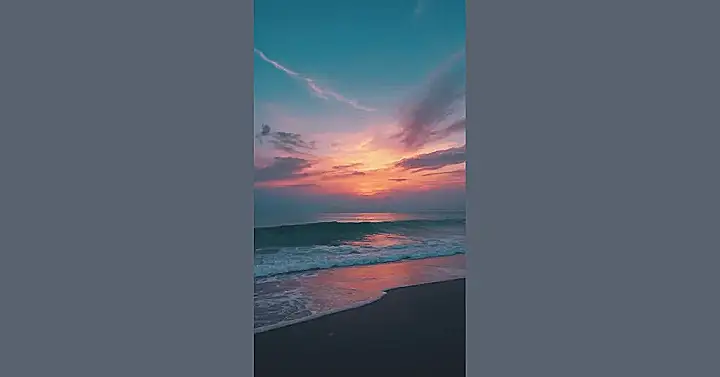 This picture is like a chill vibe, you know? It’s got those soft, pretty colors like a sunset that’s just starting to fade, and the ocean looks like it’s whispering secrets to the beach. It’s all peaceful and calm, just like a minimalist wallpaper that isn’t too loud or crazy. It’s like looking at a calm, beautiful painting that makes you feel relaxed and happy.