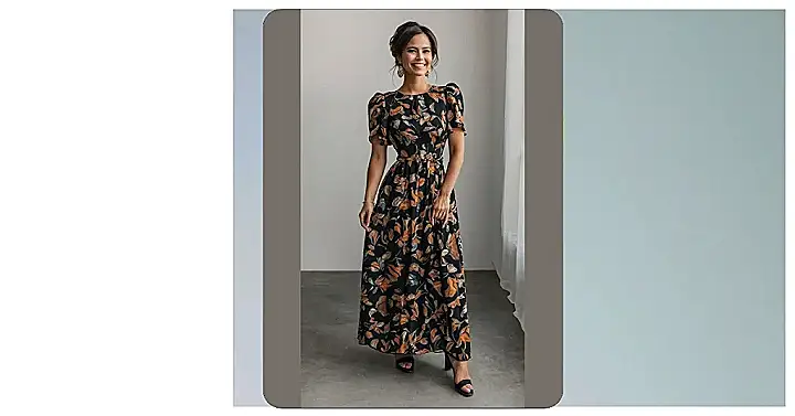 This dress is seriously giving us all the fall vibes! Imagine yourself strolling through a pumpkin patch, sipping on apple cider, and rocking this gorgeous floral maxi dress. It’s like something straight out of a fairytale, with its flowy fabric and pretty prints. You’ll be the most stylish pumpkin spice latte connoisseur in town!