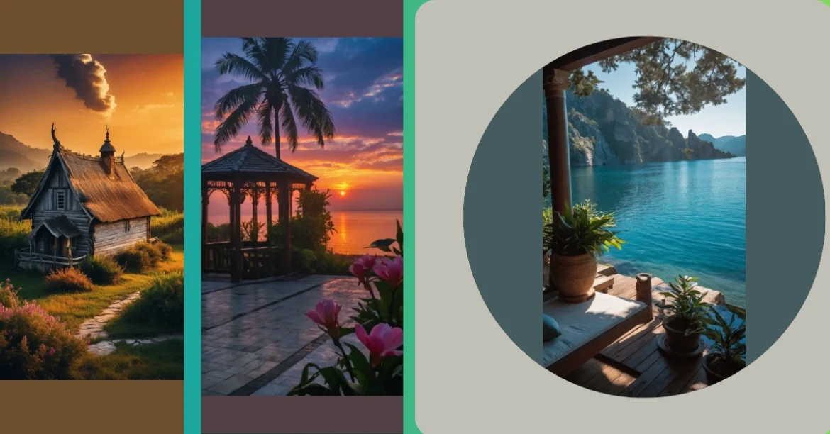 This picture is like a postcard from paradise! Imagine waking up to this gorgeous sunrise, the sky all pink and orange like a giant fruit punch. You’re sitting in a cozy gazebo, maybe sipping some juice and listening to the waves crashing on the shore. The palm tree is swaying gently, like it’s dancing to the music of the morning. It’s the perfect place to relax and enjoy the beauty of nature.