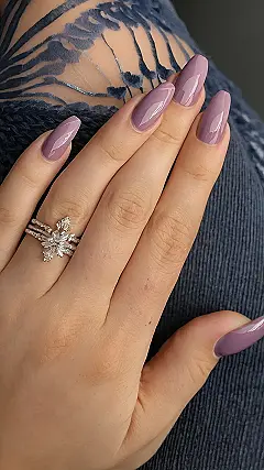 This picture is all about cozy vibes and getting ready for autumn! Just like the leaves are changing colors, this person’s nails are decked out in a super pretty shade of mauve. It’s like the color of a warm cup of apple cider on a crisp fall day. It’s subtle, yet elegant, and perfect for pairing with your favorite sweater. Plus, it’s a total mood-booster!