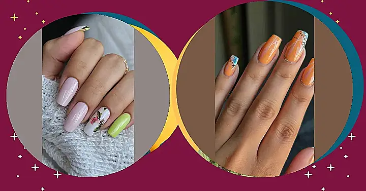 These nails are like a mini-vacation for your fingertips! With shades of blue that remind you of a clear summer sky, and sparkly accents that look like tiny stars, they’re practically begging to be admired. They’re like a piece of nature you can wear on your hands, and they’re totally rockin’ the “nature nails” trend.