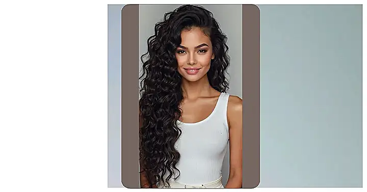 This picture is like a scene from a shampoo commercial! The model is rocking some gorgeous curly hair that looks super soft and bouncy. Her hair is longer than a school bus and those waves are making me want to run my fingers through them (but I wouldn’t, that’s kinda weird). It makes me think about all the different hairstyles you can do with curly hair, like braids, buns, or just letting those gorgeous locks flow freely. This is a reminder that no matter what your hair type is, there’s a way to make it look amazing!