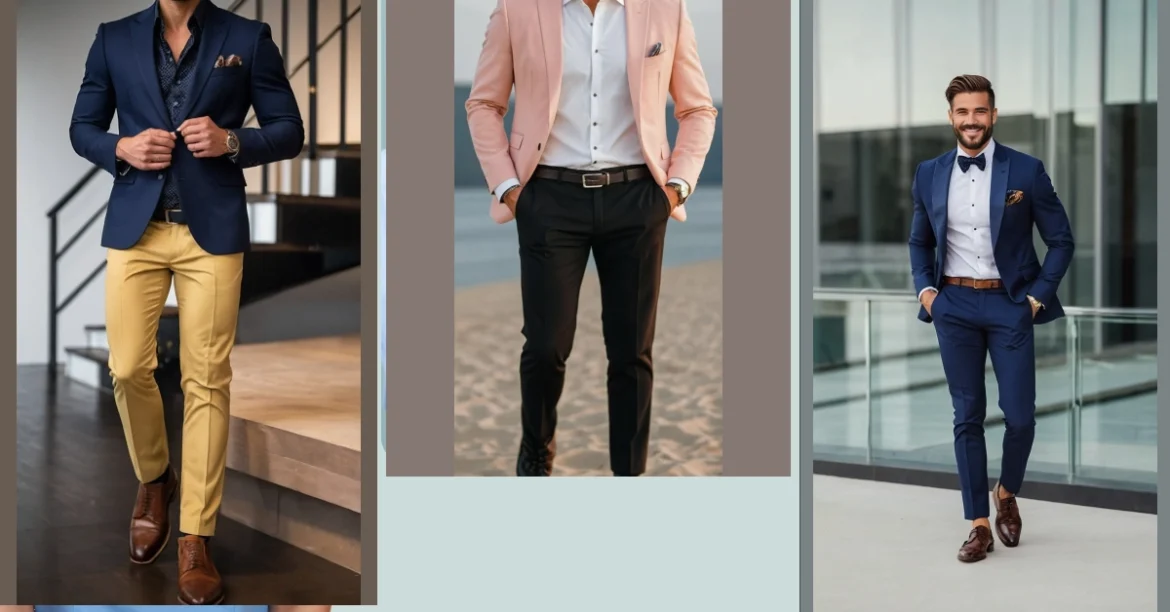 This guy’s got the “mens formal outfits” thing down pat! Look at that sharp blue blazer. It’s like a superhero cape for grown-ups. And those mustard-yellow pants? They’re like a sunshine explosion in his wardrobe! It’s a bold choice, but it totally works. He’s like the coolest dude at the school dance, ready to impress everyone with his amazing style.