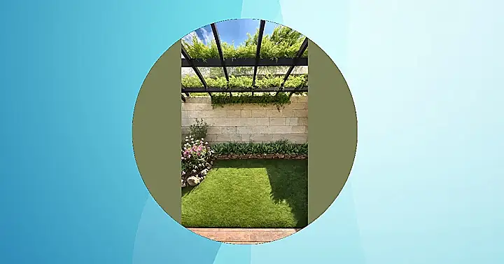 And down below, the grass is so perfectly manicured it probably sends a shiver down the spine of every overgrown lawn out there. Those spiky green plants along the wall look like they’re having a serious, important meeting, while the pink flowers on the corner are just there for the vibes, looking pretty without asking for much space. This small garden is so neatly put together, you could practically count every blade of grass (but please don’t, unless you’re really bored!). It’s the ultimate chill zone, proving you don’t need a whole football field to have a great outdoor escape – just a smart design and maybe some tiny garden gnomes to complete the picture.