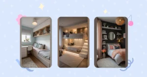 It’s not just a place for arts and crafts; it’s also a fully functional office. All the necessary things are within arm’s reach. You can find pens, scissors, notebooks, and a calendar to keep everything on track. This is the ideal space to keep both your artistic passion and your school obligations in check, whether you’re making the next viral Tik-Tok or crafting an excellent piece of writing.
