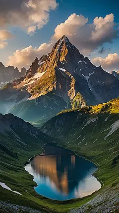 Those mountains are like nature’s skyscrapers, only way cooler! I mean, who needs elevators when you can have snow-capped peaks and views that make your jaw drop? It kind of looks like a place straight out of a fantasy movie, where maybe a dragon lives in a cave behind that snowy patch. And the best part? No noisy neighbors, just the sounds of the wind and maybe a grumpy bear or two saying “Get off my lawn!”.