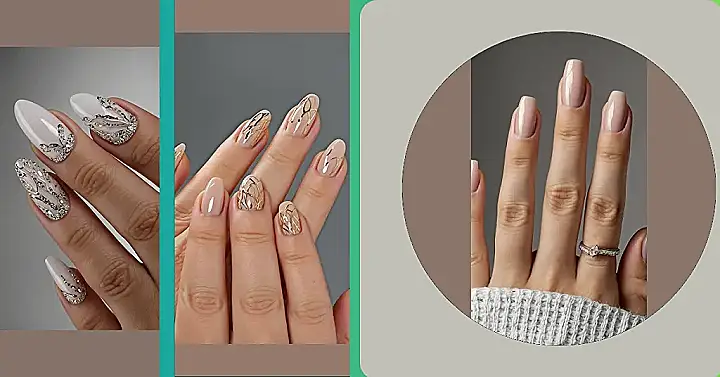 Ready to ditch the basic polish for something totally next-level? Check out these absolutely stunning modern nails! They’re like tiny masterpieces glued right onto your fingertips, featuring super elegant white designs that swirl and sparkle over a chic nude base. Forget hiding your hands when you’re caught doodling in class – these nails are practically begging for a spotlight. You’ll be tapping away on your phone, and people will be like, “Whoa, are those actual tiny works of art?”